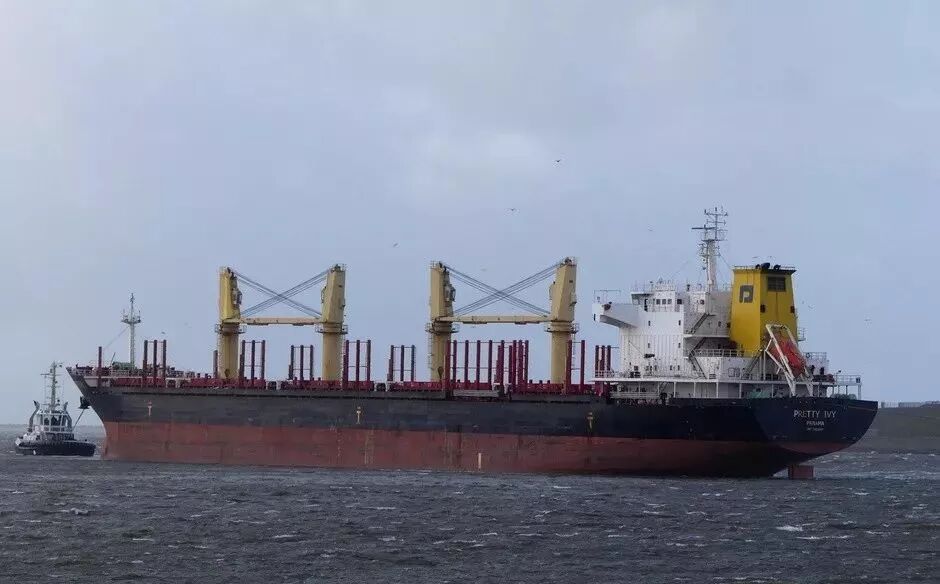 “Pretty Ivy”號散貨船從IJmuiden號上掙脫,出動了3艘拖船才控制住。