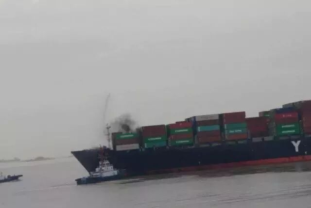 2017年1月6日中午12點(diǎn)左右,陽明旗下一艘名為“泰明輪”的船舶計(jì)劃掛靠上海洋山港時(shí)突然發(fā)生集裝箱著火。